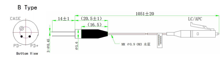 โฟโตไดโอดแบบคู่ InGaAs Pigtailed multimode fibre โดยสามารถเลือกเส้นผ่านศูนย์กลางแกน 50µm หรือ 62.5µm ได้ และช่วงความยาวคลื่นการตรวจจับ 900-1700nm