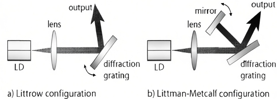 ถูกจำกัดด้วยปัจจัยต่างๆ เช่น ความยาวช่องที่สั้นเกินไปและการสูญเสียจากภายในสูง การกำหนดค่าเลเซอร์ช่องเดียวเชิงเส้นของ FP ที่อิงตามการป้อนกลับภายในช่อง ต้องทนทุกข์ทรมานจากเวลาปฏิสัมพันธ์ของโฟตอนที่จำกัด และความยากลำบากในการกำจัดการปล่อยก๊าซที่เกิดขึ้นเองจากตัวกลางที่ได้รับ เพื่อแก้ไขปัญหานี้ นักวิจัยได้เสนอการกำหนดค่าป้อนกลับช่องภายนอกแบบเดียว ช่องภายนอกทำหน้าที่ยืดเวลาปฏิสัมพันธ์ของโฟตอนและป้อนโฟตอนที่ถูกกรองกลับเข้าไปในช่องหลัก ซึ่งจะช่วยเพิ่มประสิทธิภาพการทำงานของเลเซอร์และบีบอัดความกว้างของเส้น โครงสร้างช่องภายนอกที่เรียบง่ายในยุคแรกๆ ที่ใช้ทัศนศาสตร์เชิงพื้นที่ เช่น การกำหนดค่า Littrow และ Littman ใช้ความสามารถในการกระจายสเปกตรัมของตะแกรงเพื่อนำสัญญาณเลเซอร์บริสุทธิ์กลับเข้าไปในช่องหลักของเลเซอร์ โดยใช้ความถี่ในการดึงบนช่องหลักเพื่อให้ได้การบีบอัดความกว้างของเส้น โครงสร้างช่องภายนอกเดี่ยวนี้ถูกขยายไปยังเลเซอร์ไฟเบอร์และเลเซอร์เซมิคอนดักเตอร์ในภายหลัง