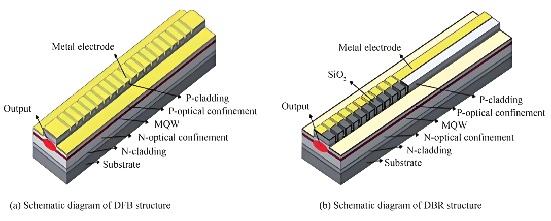 โครงสร้างตัวสะท้อนเสียงอีกแบบหนึ่งที่ใช้ตะแกรง Bragg คือการกำหนดค่า DFB ช่องหลักของเลเซอร์ DFB ผสมผสานโครงสร้าง Bragg เข้ากับบริเวณที่ทำงาน และแนะนำบริเวณการเปลี่ยนเฟสที่ศูนย์กลางของโครงสร้างสำหรับการเลือกความยาวคลื่น ดังที่แสดงในรูปที่ 3(b) การกำหนดค่านี้มีลักษณะของการบูรณาการและความสามัคคีของโครงสร้างในระดับที่สูงกว่า และลดปัญหาต่างๆ เช่น การเคลื่อนตัวของความยาวคลื่นที่รุนแรงและการกระโดดของโหมดในโครงสร้าง DBR ทำให้มีการกำหนดค่าเลเซอร์ที่เสถียรและใช้งานได้จริงมากที่สุดในขั้นตอนปัจจุบัน